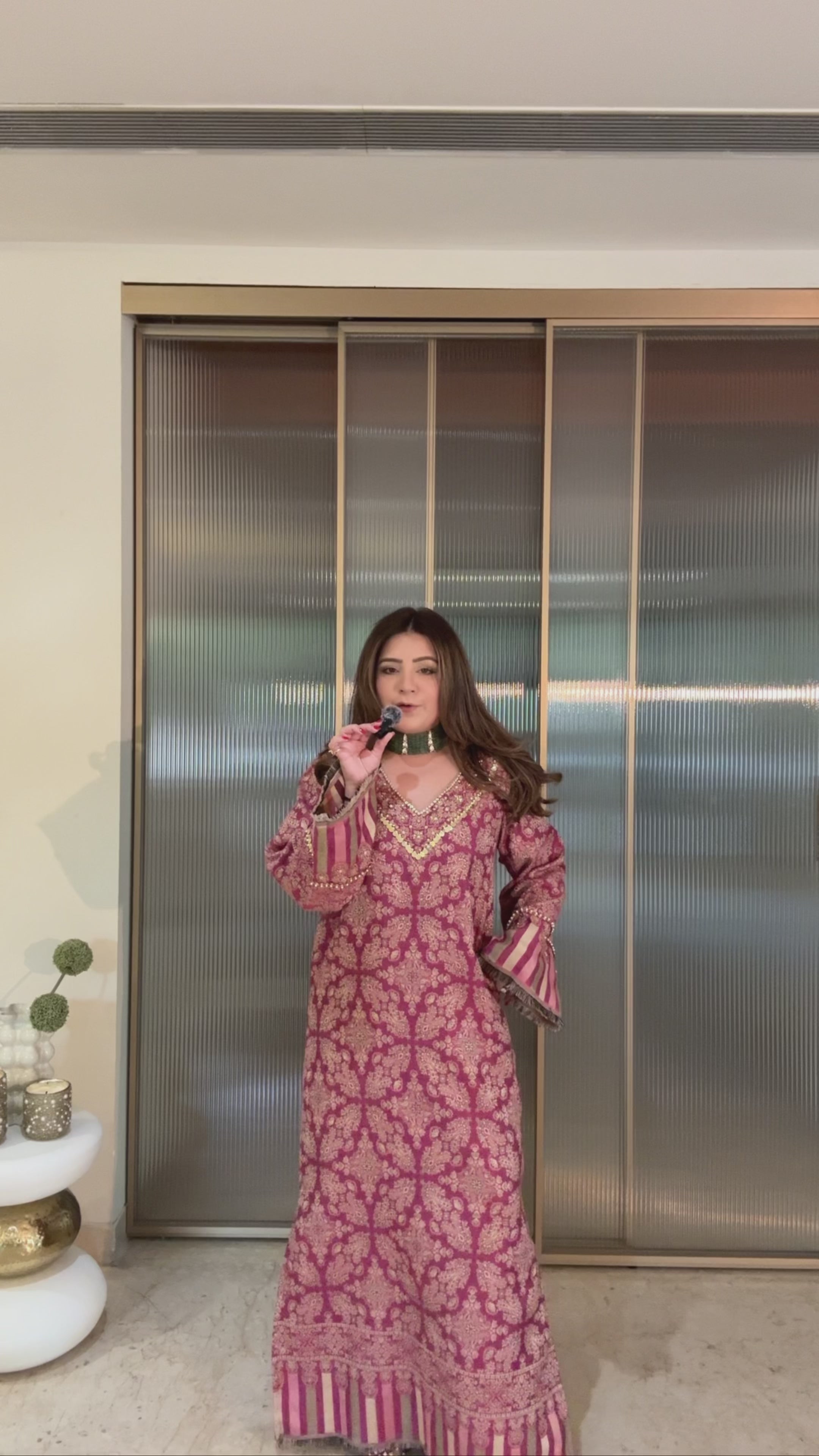 Meghna Pahwa in our Parisa Embroidered Shawl Kaftan (Fuchsia)